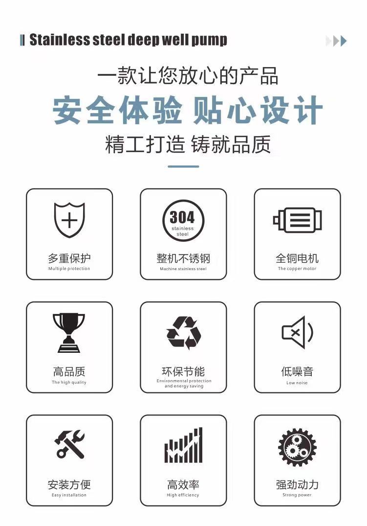 產品說明:南方pq不銹鋼噴泉專用潛水電泵,由潛水泵和噴泉用潛水電機組成。泵與電機通過聯軸器直接相連。適用于景觀音樂噴泉專用。