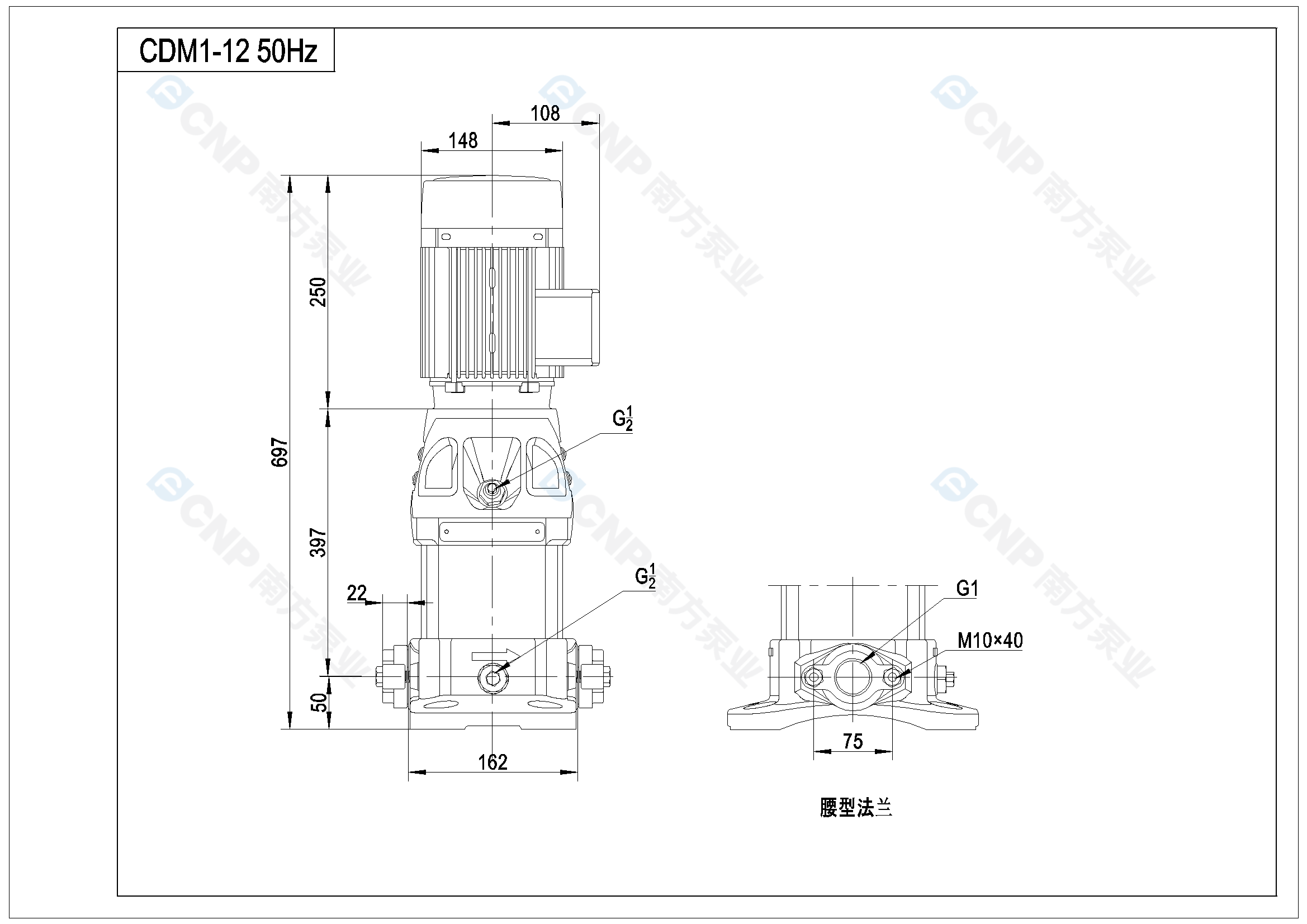 您的位置: 南方泵業 > 在線選型 > 多級泵 > CDM(F)(50Hz) > CDM1-12