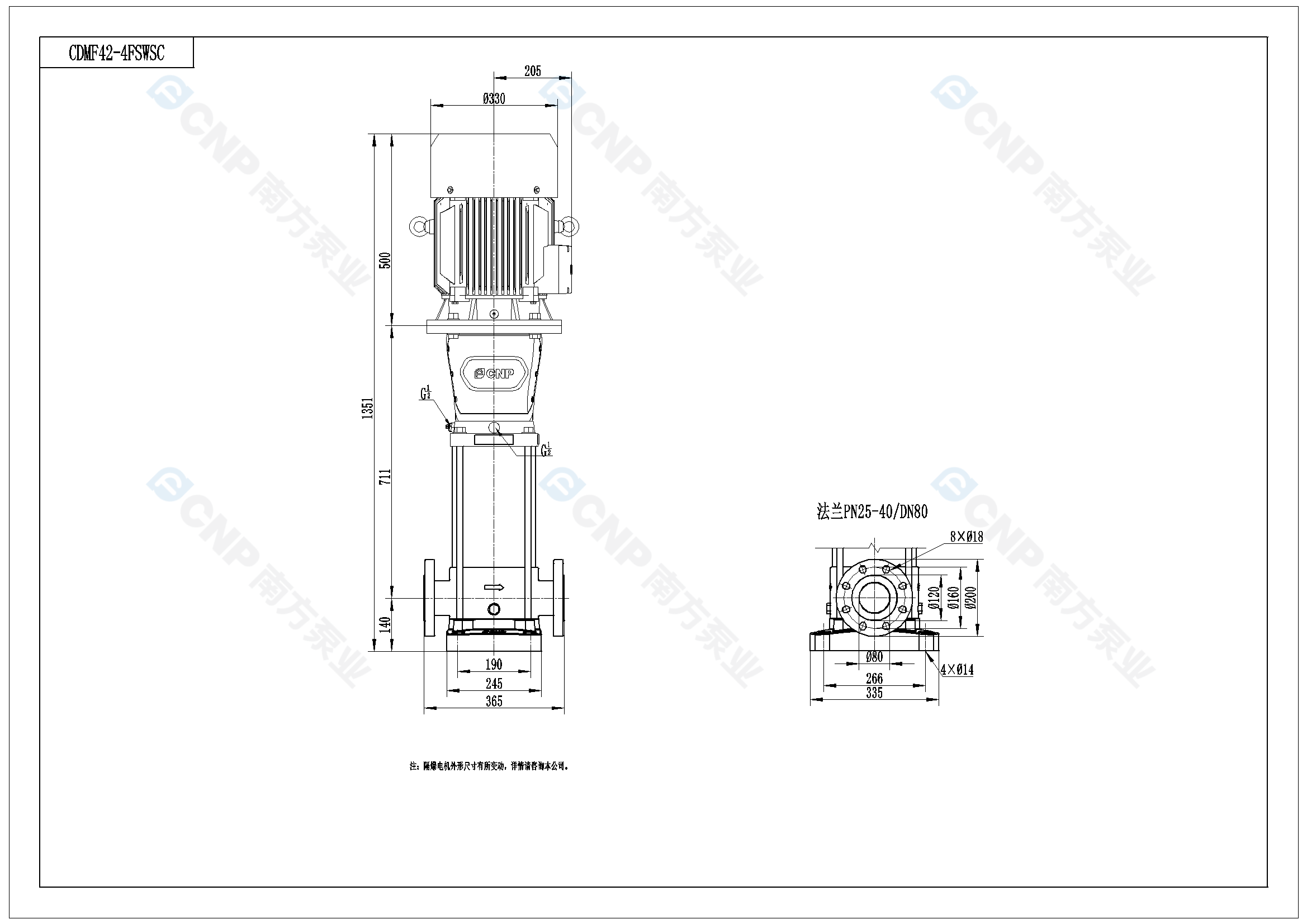您的位置: 南方泵業 > 在線選型 > 多級泵 > CDM(F)(50Hz) > CDM42-4