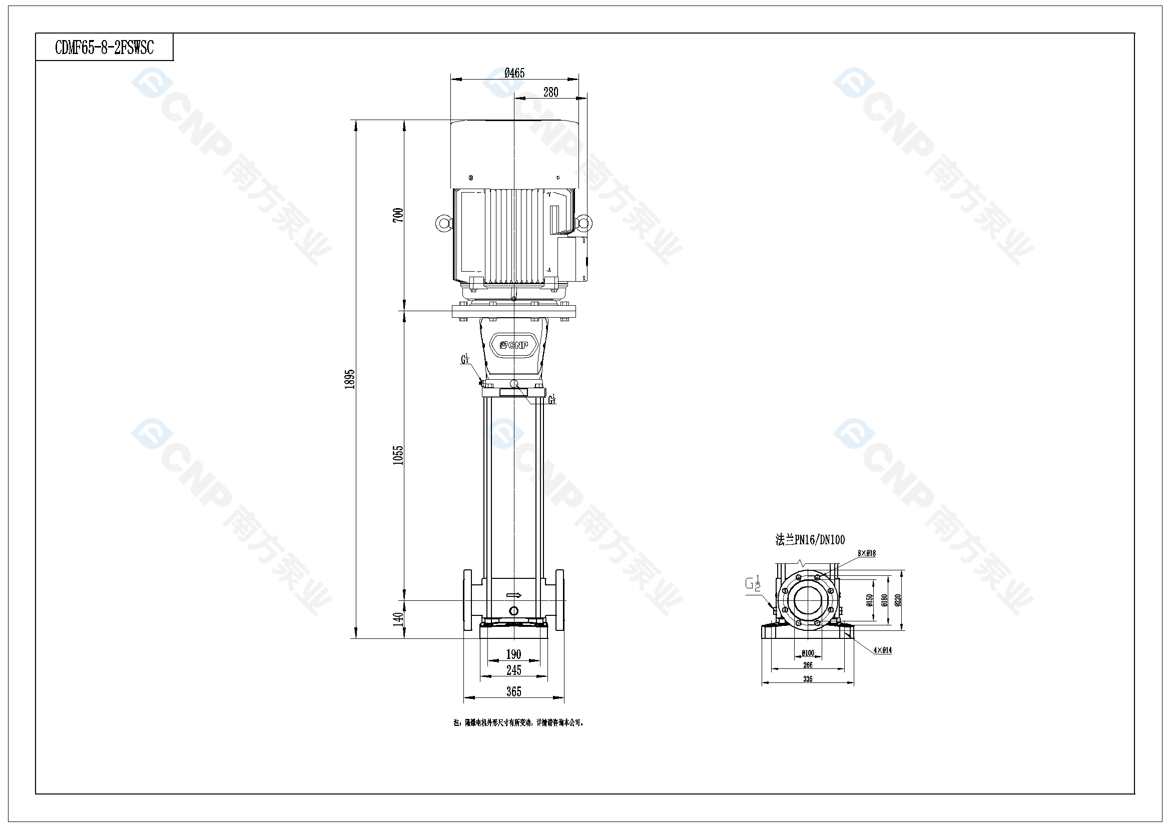 南方泵業CDM65-8-2水泵明細參數
