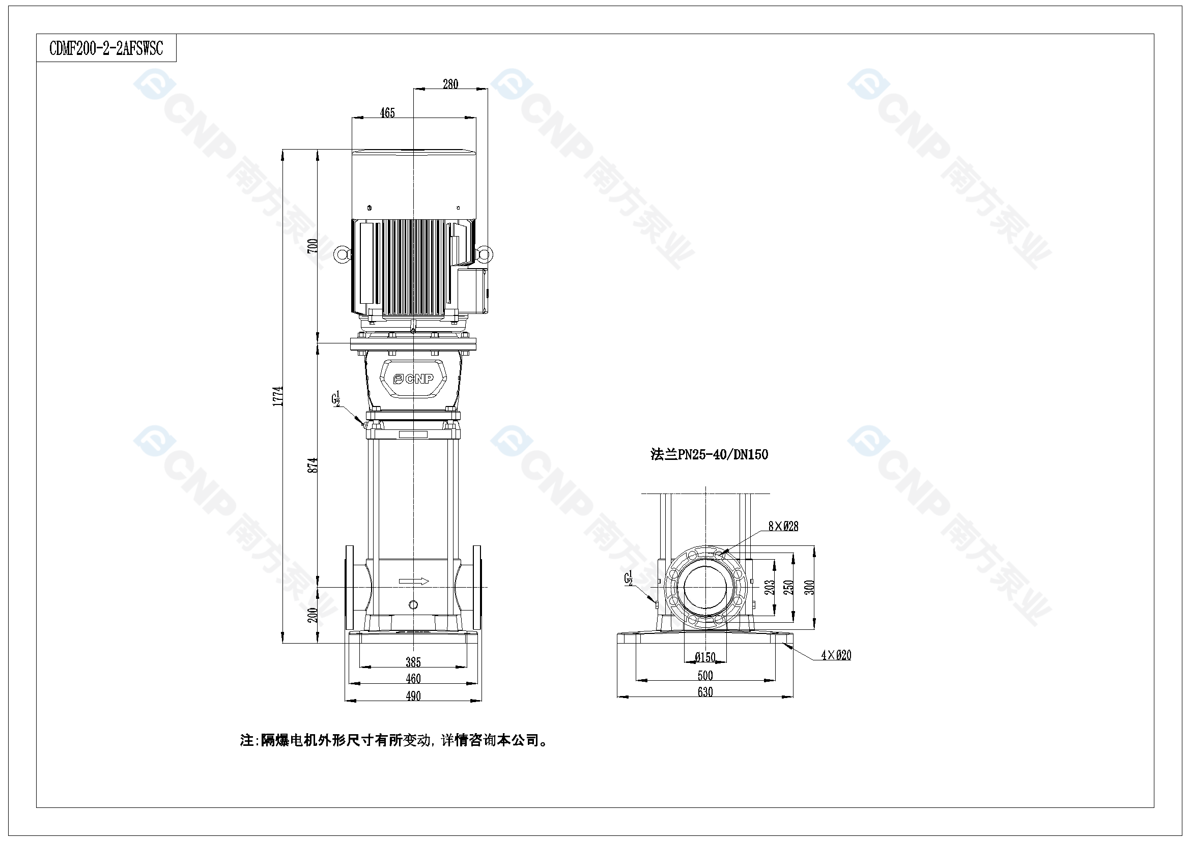 您的位置: 南方泵業 > 在線選型 > 多級泵 > CDM(F)(50Hz) > CDM200-2-2A