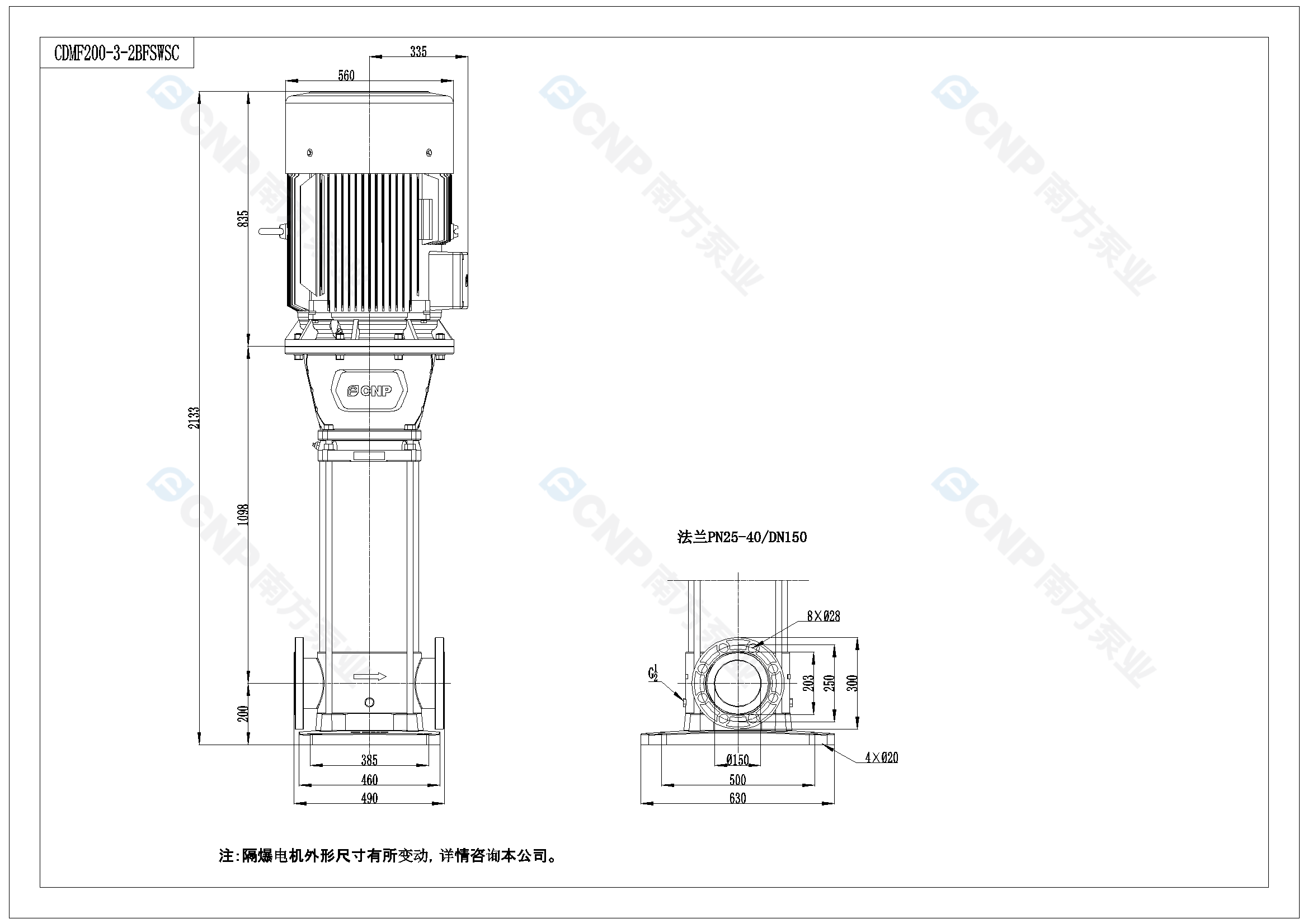 您的位置: 南方泵業 > 在線選型 > 多級泵 > CDM(F)(50Hz) > CDM200-3-2B