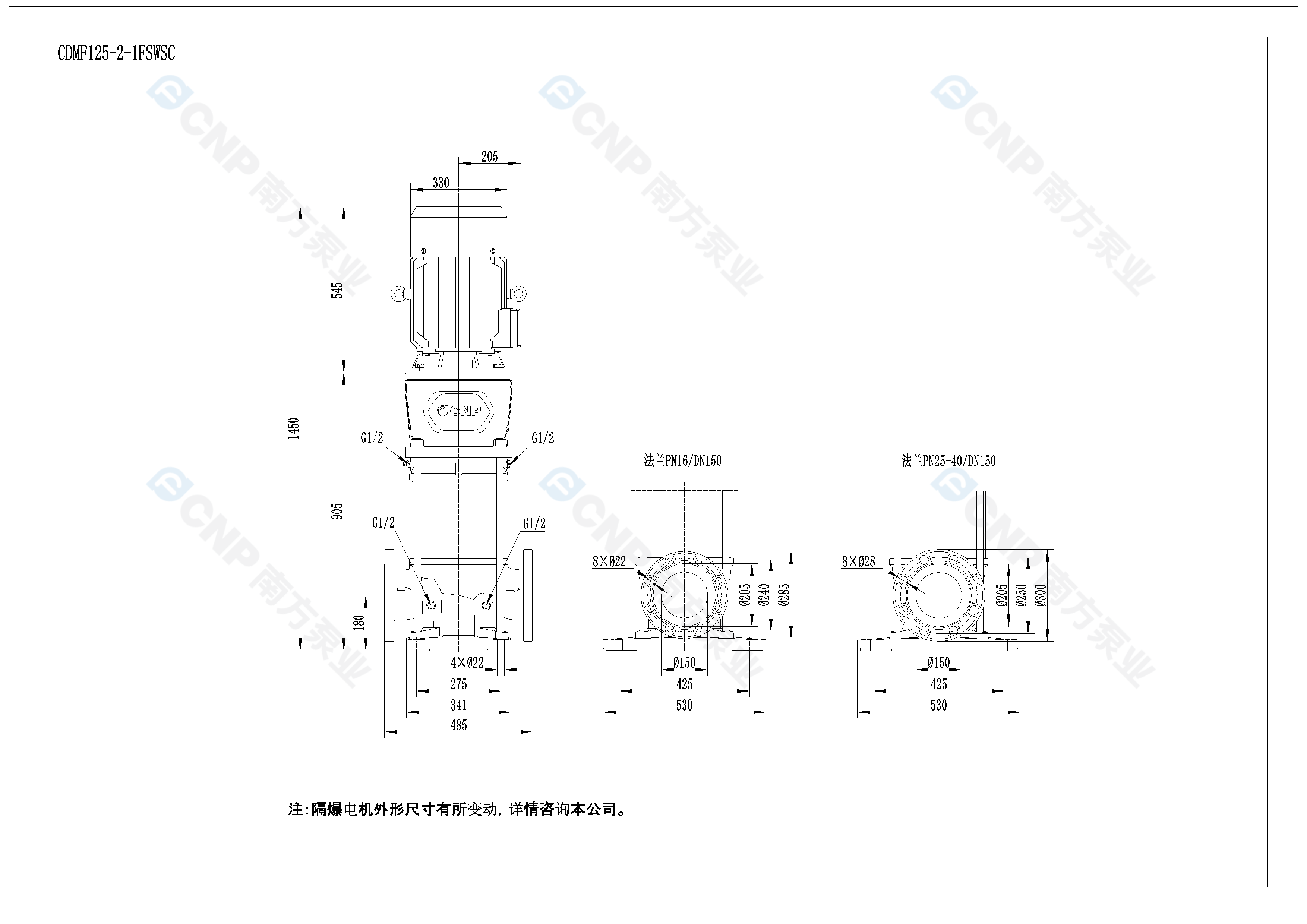 您的位置: 南方泵業 > 在線選型 > 多級泵 > CDM(F)(50Hz) > CDM125-2-1