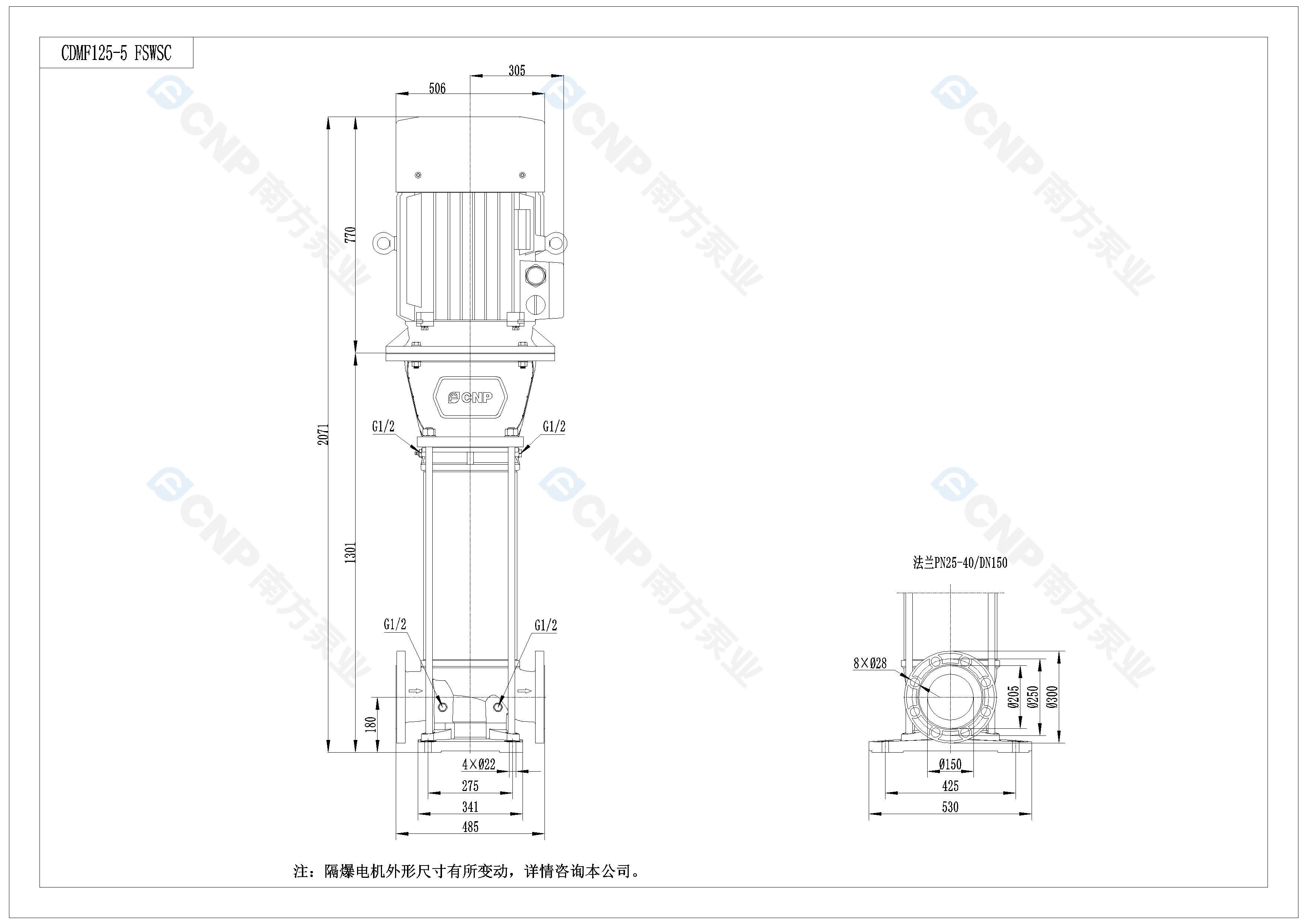 您的位置: 南方泵業 > 在線選型 > 多級泵 > CDM(F)(50Hz) > CDM125-5