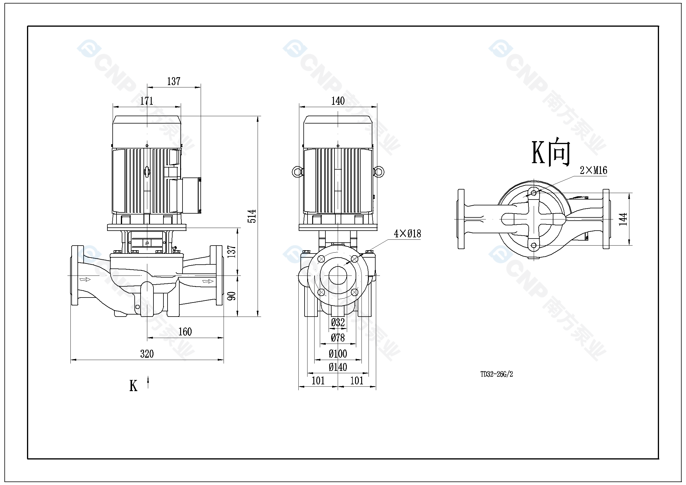 南方泵業TD32-26G/2水泵明細參數